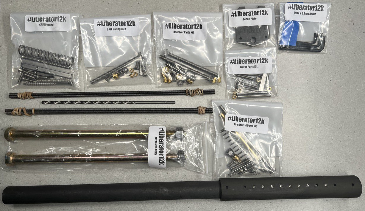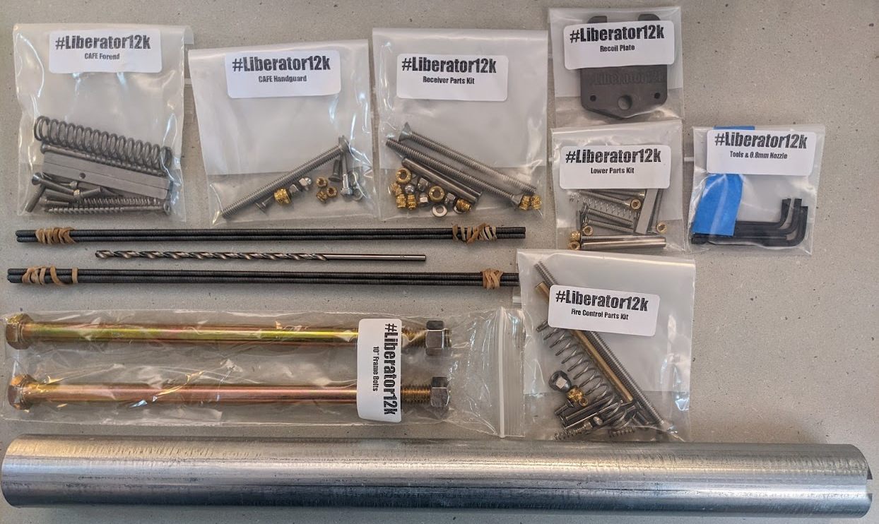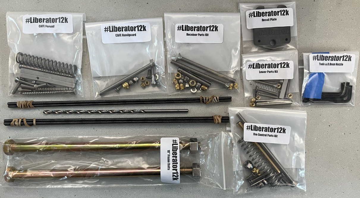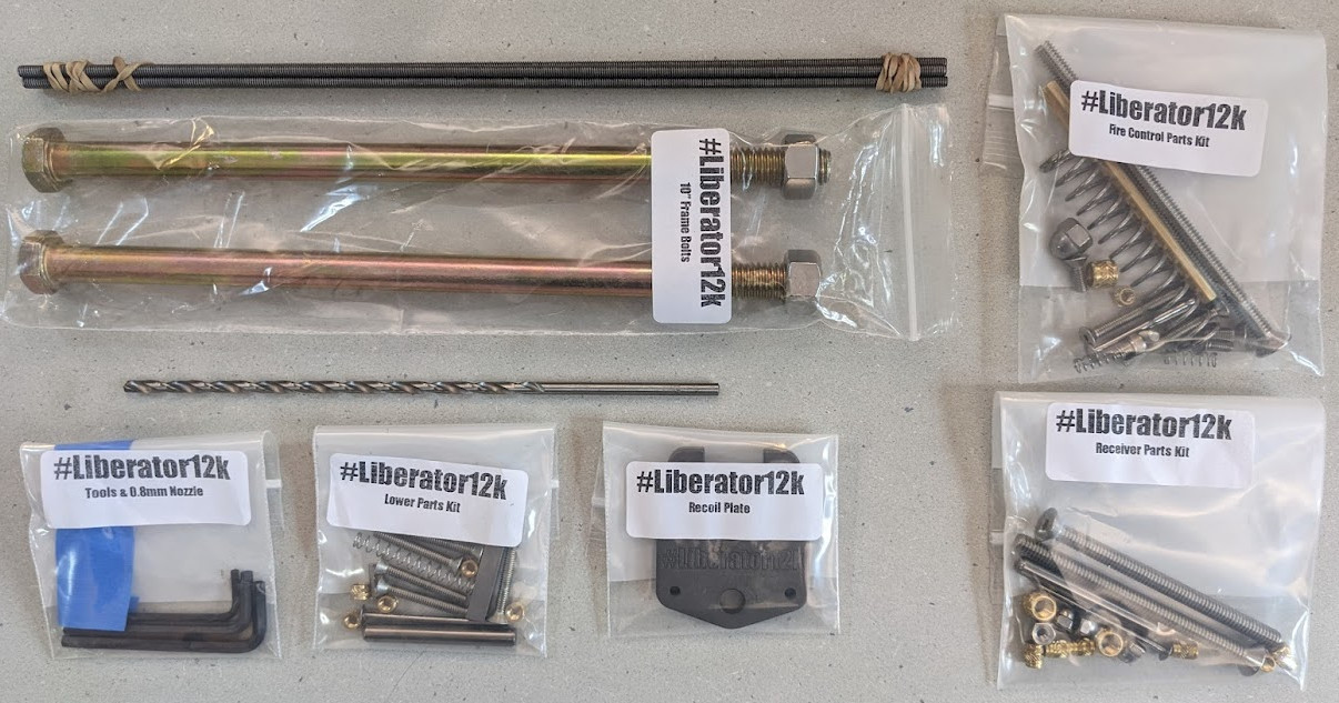 Complete Minuteman receiver hardware kit, compatible with most of the designs in the Liberator12k family.